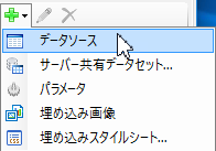 - [レポートエクスプローラ]で[データソース]ノードを右クリックし、[データソースの追加]オプションを選択するか、[追加](+)ボタンから[データソース]を選択します。
