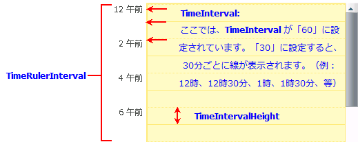 このプロパティは、日ビューの時間間隔行の高さ(ピクセル単位)を指定します。