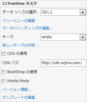 テンプレート編集モードでは、異なったオプションの[C1TreeView タスク]メニューが表示されます。