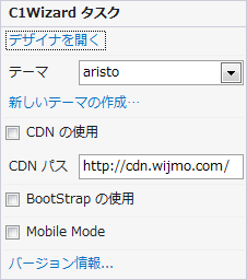 [C1Wizard タスク]メニューにアクセスするには、C1Wizard コントロールの右上端にあるスマートタグをクリックします。[C1Wizard タスク]メニューが開きます。