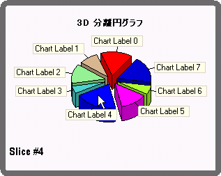 また、このデータセットの Offset プロパティを設定し、円の中心から分離したセグメントのオフセットを設定する必要があります。コードを使用してオフセットを設定する方法の詳細は、「特殊な円グラフのプロパティ」を参照してください。ChartDataSeries コレクションエディタを使用してオフセットを設定する方法の詳細は、「分離円グラフ」を参照してください。