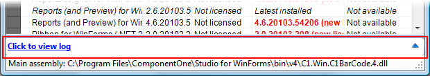 更新ログは、製品グリッドの下のペインに表示されます。更新ログが表示されない場合は、製品グリッドの下でステータスバーの上にある[クリックしてログを表示]リンクをクリックするか、キャロット矢印アイコンをクリックします。