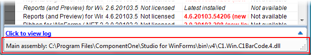 製品グリッドでインストール済みの製品が選択されている場合は、そのファイルのメインアセンブリがステータスバーに表示されます。