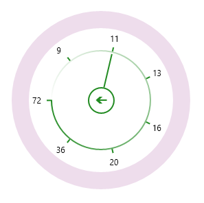 <Xaml:C1RadialNumericItem Header="Font Size" Minimum="9" Maximum="72" MarkStartAngle="-128" MarkEndAngle="231" x:Name="fontSize" Value="11"> <Xaml:C1RadialNumericItem.Icon> <TextBlock Style="{StaticResource TextIconStyle}" FontFamily="Segoe UI" FontSize="18"> <Run Text="A"/> <Run Text="{Binding Value, ElementName=fontSize}" Typography.Variants="Superscript"/> </TextBlock> </Xaml:C1RadialNumericItem.Icon> <x:Double>9</x:Double> <x:Double>11</x:Double> <x:Double>13</x:Double> <x:Double>16</x:Double> <x:Double>20</x:Double> <x:Double>36</x:Double> <x:Double>72</x:Double> </Xaml:C1RadialNumericItem> |