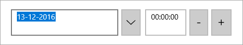 DateTimeEditors for UWP には、C1DateTimePicker コントロールが含まれています。これは、デフォルトで日付ピッカーと時刻ピッカーの両方を提供するシンプルなコントロールです。XAML ウィンドウに追加された C1DateTimePicker コントロールは、完全な機能を備えた日付/時刻ピッカーになります。デフォルトでは、コントロールのインタフェースは次の図のように表示されます。