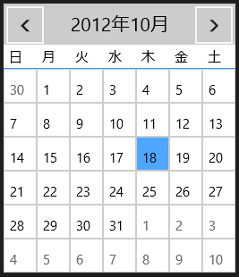 日付ピッカーのドロップダウンボタンをクリックするとカレンダーが開くので、そこから日付ピッカーの日付を選択できます。