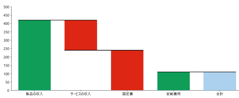 次の図に、一連の正の値と負の値の累積的な影響を表したウォータフォール系列を示します。