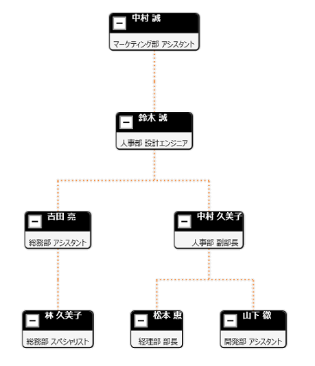 Sarah Williams ノードと Larry Doe ノードのチェックボックスをクリックすると、ブランチが折りたたまれ、コンパクトに表示されます。