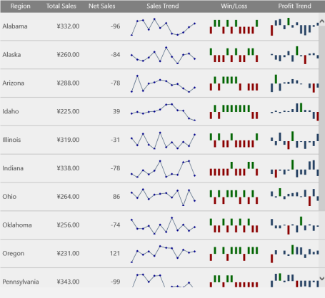 それぞれのタイプの C1Sparkline がアプリケーションに表示されます。