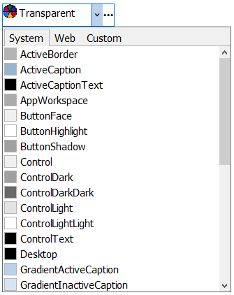 The C1ColorPicker class provides BackColor and ForeColor properties to set the background and foreground colors, respectively. Besides these, it also provides the Styles property to apply styling to different states of the control such as Default, Disabled, Hot, HotPressed, and Pressed.