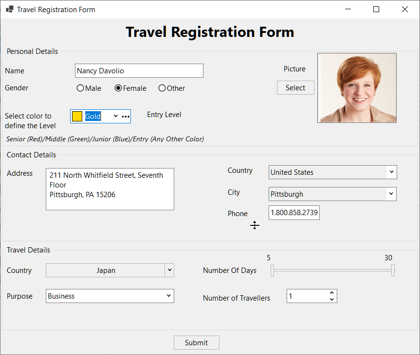 This quick start will guide you through the steps of creating a simple travel registration form using the Input controls. Follow the steps below to get started.
