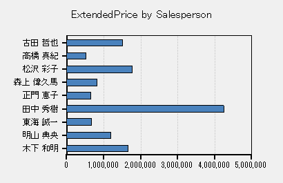 [チャート]メニューからは、チャートタイプ、パレット、チャートの上にチャートタイトルを表示するかどうか、積層グラフを表示するかどうか、チャートのグリッド線を表示するかどうか、および合計だけを表示するかどうかを決定できます。