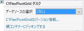 C1FlexPivotGrid コントロールは、よく使用されるプロパティやタスクにアクセスするために、Visual Studio でスマートタグを提供しています。このスマートタグは、次の図のように表示されます。