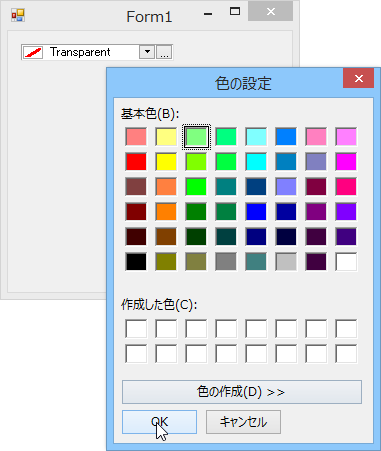 ドロップダウンボタンの右側にある省略符を使用すると、カラーピッカーにある基本色を選択できます。