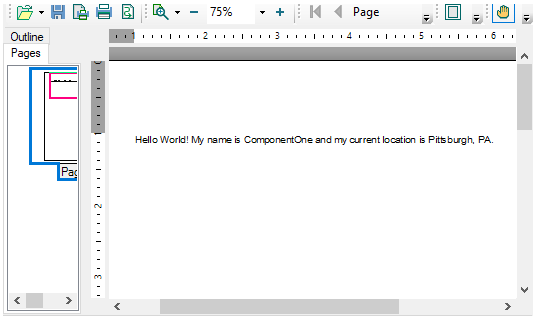 C1PrintDocument doc = new C1PrintDocument(); this.c1PrintPreviewControl1.Document = doc; // ドキュメントの生成時に[タグ]ダイアログボックスを表示します。 doc.ShowTagsInputDialog = true; // タグを作成しますが、[タグ]ダイアログボックスには表示しません。 doc.Tags.Add(new C1.C1Preview.Tag("Statement", "Hello World!")); doc.Tags["Statement"].ShowInDialog = false; // 表示されるタグを作成します。 doc.Tags.Add(new C1.C1Preview.Tag("Name", "ComponentOne")); doc.Tags.Add(new C1.C1Preview.Tag("Location", "Pittsburgh, PA")); // ドキュメントにタグを追加して生成します。 C1.C1Preview.RenderText rt = new C1.C1Preview.RenderText(); rt.Text = "[Statement] My name is [Name] and my current location is [Location]."; doc.Body.Children.Add(rt); doc.Generate(); |