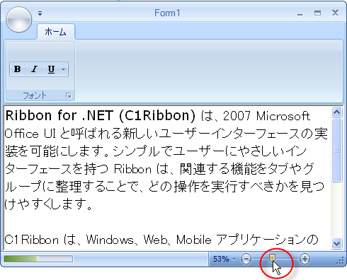 - C1Ribbonコントロールと C1StatusBarコントロールを使用するリボンフォームを作成する。