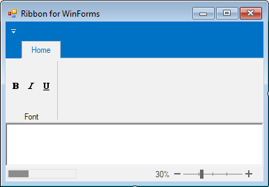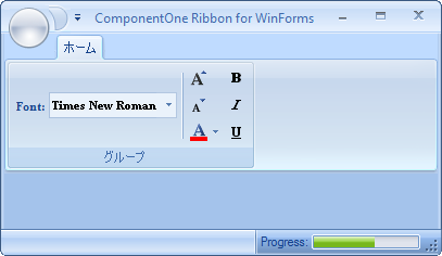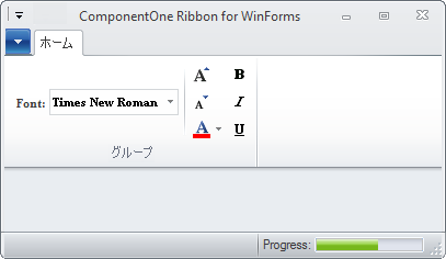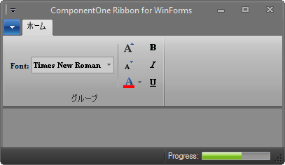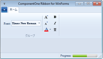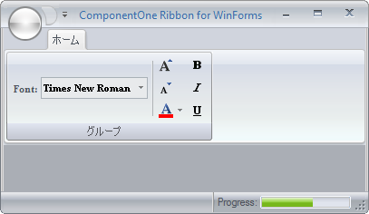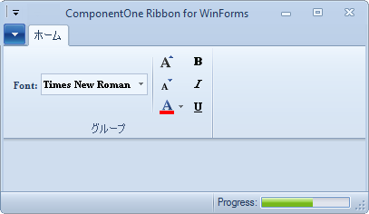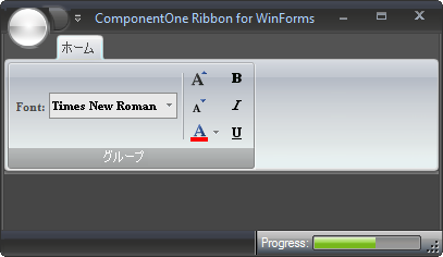 リボンアイテム画像リボンレイアウトの XML シリアル化Office式または、Windows式の定義済み表示スタイルの中から C1Ribbon の視覚スタイルを選択できます。これで、C1Ribbon にきれいで効率の良い Windows Aero インターフェースが適用されます。