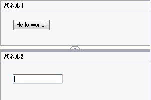 次の図は、C1SplitContainer コントロールで Panel1 に Button コントロール、Panel2 に TextBox コントロールを配置した場合を示しています。