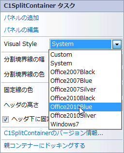 ‘ スプリットコンテナの視覚スタイルを Office2010Blue に設定します