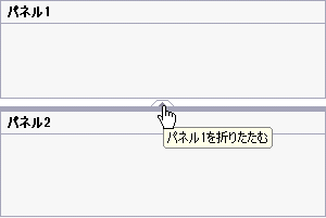 縮小/拡張されたスプリッタバーに ToolTip を追加することによって、より使いやすい Web アプリケーションを作成します。ToolTip により、エンドユーザーは、拡張ボタンをクリックして非表示のパネルを拡張したり、縮小ボタンをクリックしてパネルを非表示にしたりする方法を知ることができます。詳細については、拡張ボタンを参照してください。