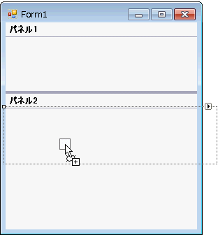 - [C1SplitContainer タスク]メニューから[パネルの追加]を選択します。既存のパネルの下に1つの C1SplitterPanel が追加されます。