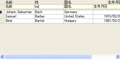 フィルタバーに入力促進文字列を追加し、デフォルトテキストとともに簡単に表示できます。この入力促進文字列を使ってテキストのフィルタリングやデフォルト値を追加するための指示を表示し、特定のフィルタバーのセルに入力できる値をユーザーに理解してもらうことなどできます。フィルタバーにテキストを表示するには、FilterWatermark プロパティに文字列を設定するだけです。