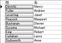 この列内のセルがフォーカスを受け取ると、そのセルは、Windows の標準のコマンドボタンとしてレンダリングされます。また、セルのテキストがキャプションとして使用されます。セルのテキストが自動的に中央に配置されることはありません。ここでは、列の水平方向および垂直方向の配置設定が使用されます。