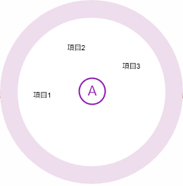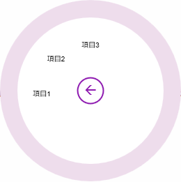 | <Xaml:C1RadialMenu SectorCount="8" > <Xaml:C1RadialMenuItem Header="項目1" /> <Xaml: C1RadialMenuItem /> <Xaml:C1RadialMenuItem Header="項目2" /> <Xaml: C1RadialMenuItem /> <Xaml:C1RadialMenuItem Header="項目3" /> </Xaml:C1RadialMenu> |