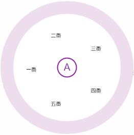 | <c1:C1RadialMenuItem Header="一番"> <c1:C1RadialMenuItem Header="二番"> <c1:C1RadialMenuItem Header="三番"> <c1:C1RadialMenuItem Header="四番"> <c1:C1RadialMenuItem Header="五番"/> </c1:C1RadialMenuItem> |