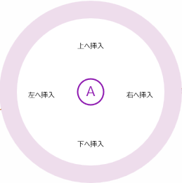 | <Xaml:C1RadialMenu SectorCount="8"> <Xaml:C1RadialMenuItem Header="左へ挿入"/> <Xaml:C1RadialMenuItem Header="上へ挿入" DisplayIndex="2" /> <Xaml:C1RadialMenuItem Header="右へ挿入" DisplayIndex="4" /> <Xaml:C1RadialMenuItem Header="下へ挿入" DisplayIndex="6" /> </Xaml:C1RadialMenu> |