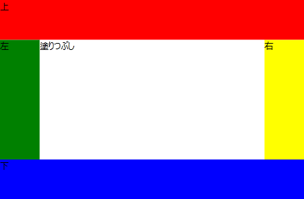これで、アプリケーションを実行する準備ができました。[デバッグ]メニューから[デバッグ開始]を選択します。アプリケーションは次のようになります。C1DockPanel コントロールの上下左右に4つの境界線がドッキングされています。