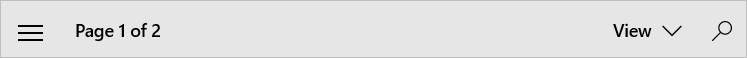 FlexViewer toolbar appears at the top of the FlexViewer control with four options, a hamburger menu, Page label, view modes and search icon. Clicking the Page label transitions it to a textbox allowing you to navigate through the document pages and clicking the search icon opens a search toolbar replacing the main toolbar.