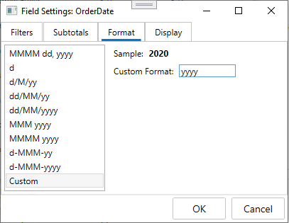 The simplest way to summarize the data by month or year is to simply modify the parameters of the “OrderDate” field. To do this, follow these steps: