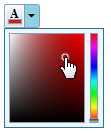 <c1:C1SplitButton x:Name="btn" DropDownWidth="100" DropDownHeight="100" HorizontalAlignment="Left" Click="btn_Click"> <c1:C1DropDown.Header> <StackPanel> <TextBlock FontFamily="Times New Roman" FontSize="12" Text="A" FontWeight="Bold" VerticalAlignment="Top" Margin="3 0 0 -2" /> <Border x:Name="selectedColorBorder" Background="Red"> <Border.Style> <Style TargetType="Border"> <Setter Property="BorderThickness" Value="1" /> <Setter Property="BorderBrush" Value="#FF9E9DA7" /> <Setter Property="Width" Value="14" /> <Setter Property="Height" Value="5" /> <Setter Property="VerticalAlignment" Value="Bottom" /> <Setter Property="Margin" Value="1,0,0,1" /> </Style> </Border.Style> </Border> </StackPanel> </c1:C1DropDown.Header> <Border BorderThickness="1" BorderBrush="#FF207A9C" Background="#FFEFF5FF"> <Border.Resources> <c1:ColorConverter x:Key="colorConverter" /> </Border.Resources> <c1:C1SpectrumColorPicker ShowAlphaChannel="False" Margin="4" Color="{Binding Background, ElementName=selectedColorBorder, Mode=TwoWay, Converter={StaticResource colorConverter}}" /> </Border> </c1:C1SplitButton> |