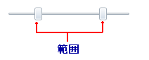 UpperValue とLowerValue のサムは、スライダトラックに沿って移動します。デフォルトでは、UpperValue プロパティは 100 に、LowerValue プロパティは 0 に設定されています。