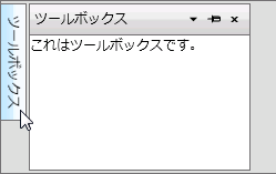 <c1:C1DockControl> <c1:C1DockTabControl DockMode="Sliding"> <c1:C1DockTabItem Header="ツールボックス"></c1:C1DockTabItem> </c1:C1DockTabControl> </c1:C1DockControl> |