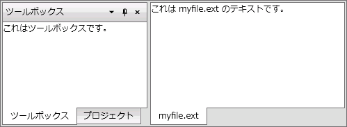 ShowHeader を False に設定したので、myfile.ext C1DockTabItem がある2番目の C1DockControl にはヘッダーがありません。