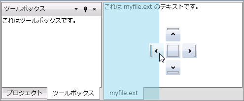 [ツールボックス]は、XAML で指定したように、左側にドッキングされています。