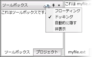 [ツールボックス]のヘッダーにあるドロップダウン矢印をクリックし、オプションを選択して、C1DockControl を浮動化、スライド、または非表示にしてみます。