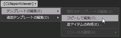 テンプレートにアクセスするには、Microsoft Expression Blend で、C1ReportViewer コントロールを選択し、メニューから[テンプレートの編集]を選択します。[コピーして編集]を選択して現在のテンプレートのコピーを作成して編集するか、[空アイテムの作成]を選択して新しい空のテンプレートを作成します。