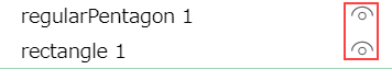ボタンをクリックすると、該当するシェイプを非表示にすることができます。ハイフン(ダッシュ)ボタンは、シェイプが非表示になっていることを示します。