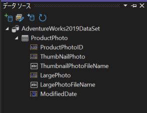 追加されたデータソースは、Visual Studio[データ]メニューから[データ ソースの表示]を選択すると表示されます。