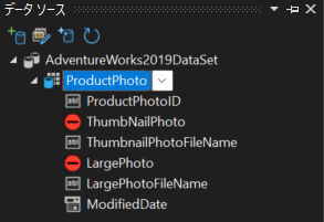 ProductPhoto テーブルを選択し、ドロップダウン ボタンを押します。